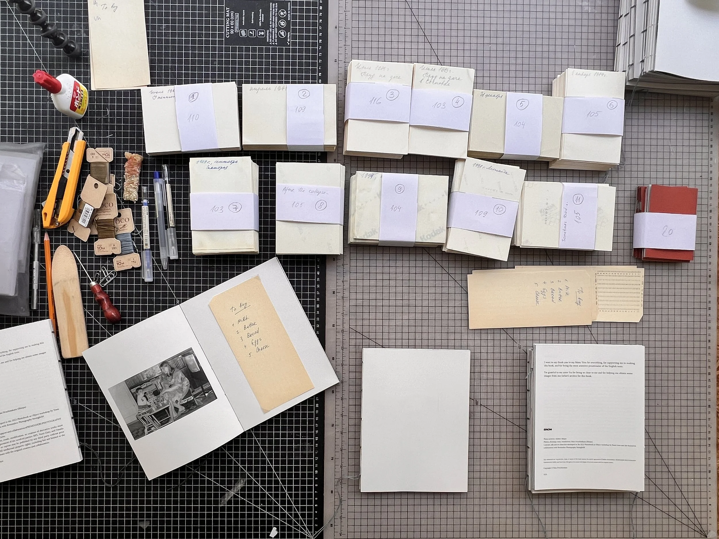 For myself, I’ve learned to enter a state where reflection shuts off, and movement becomes purely mechanical. I call it “machine mode.” This was what carried me through sewing 92 copies of my photobook Binom during the Reminders Photography Stronghold residency in Tokyo.